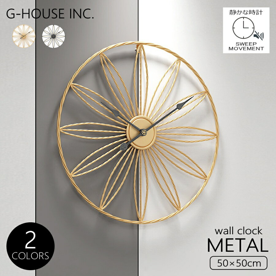 【クーポン5,000円OFF】【ポイント5倍】【送料無料 ※北海道・沖縄・離島除く 】 GMS02781 掛け時計 モダン 北欧 シンプル スタイリッシュ ラグジュアリー デザイン おしゃれ インテリア メタル 金属製 選べる2色 ホワイト ブラック 金色 40cm 静音 連続秒針 時計