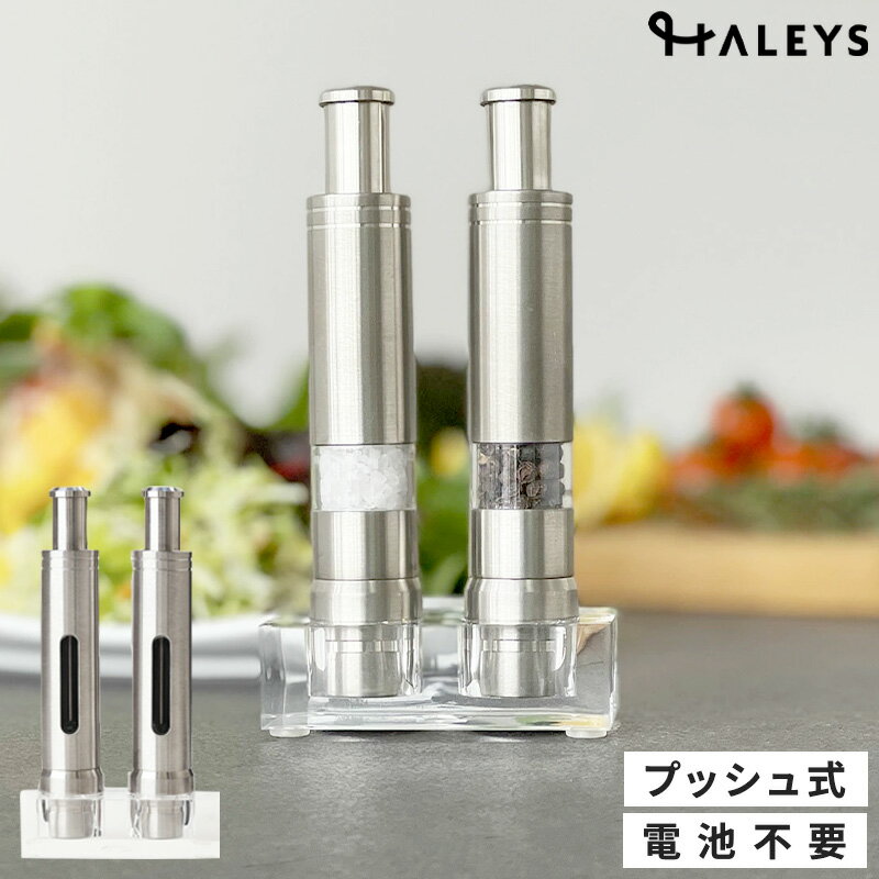 スパイスボトル 調味料入れ ペッパーミル プッシュ式 塩 コショウ スパイスミル 2本セット 台座付き One hand Coor Grinder ワンハンド クールグラインダー ソルトミル&ペッパーミルセット