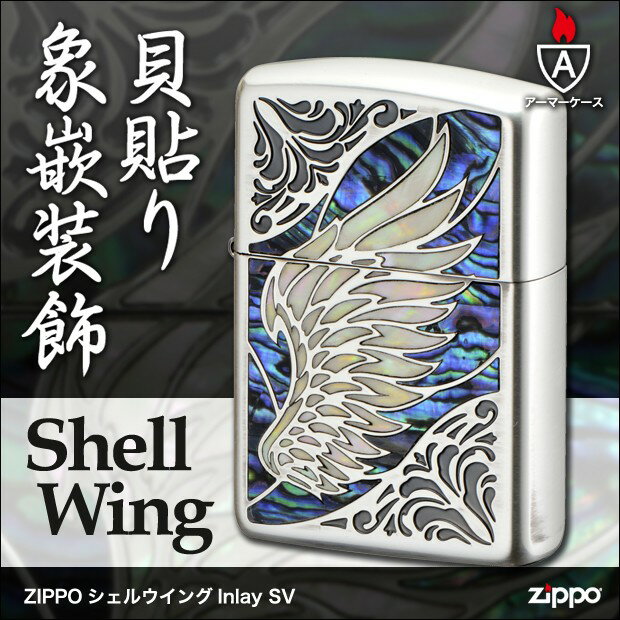 在庫限りラスト1 ZIPPO シェルウイングInlay SV 真鍮/羽/貝貼り/かっこいい/アーマーケース
