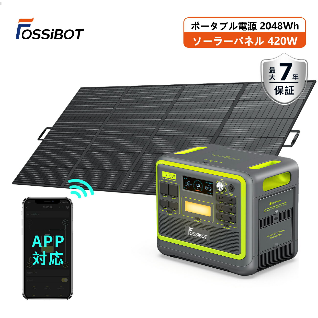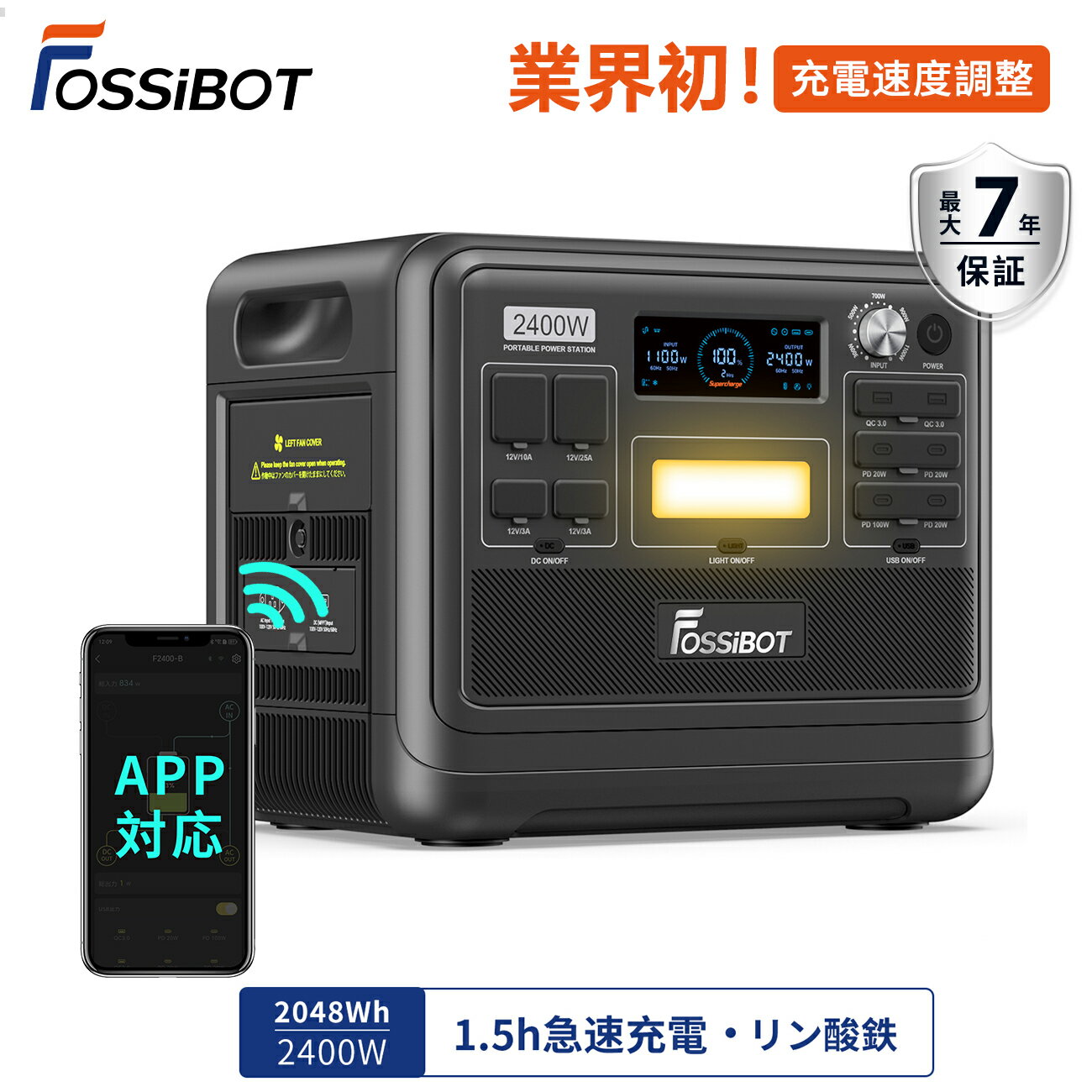 【マラソン限定SALEで82,980円&P2倍!】楽天1位5部門受賞!FOSSiBOT ポータブル電源 リン酸鉄 2048Wh超大容量と2400Wの高出力 パススルー 急速充電 2000Wh 16台設備充電 7年保証 車中泊 家庭アウトドア 災害用備品 APP 節電 充電速度調整 冬 大雪 寒さ 停電対策