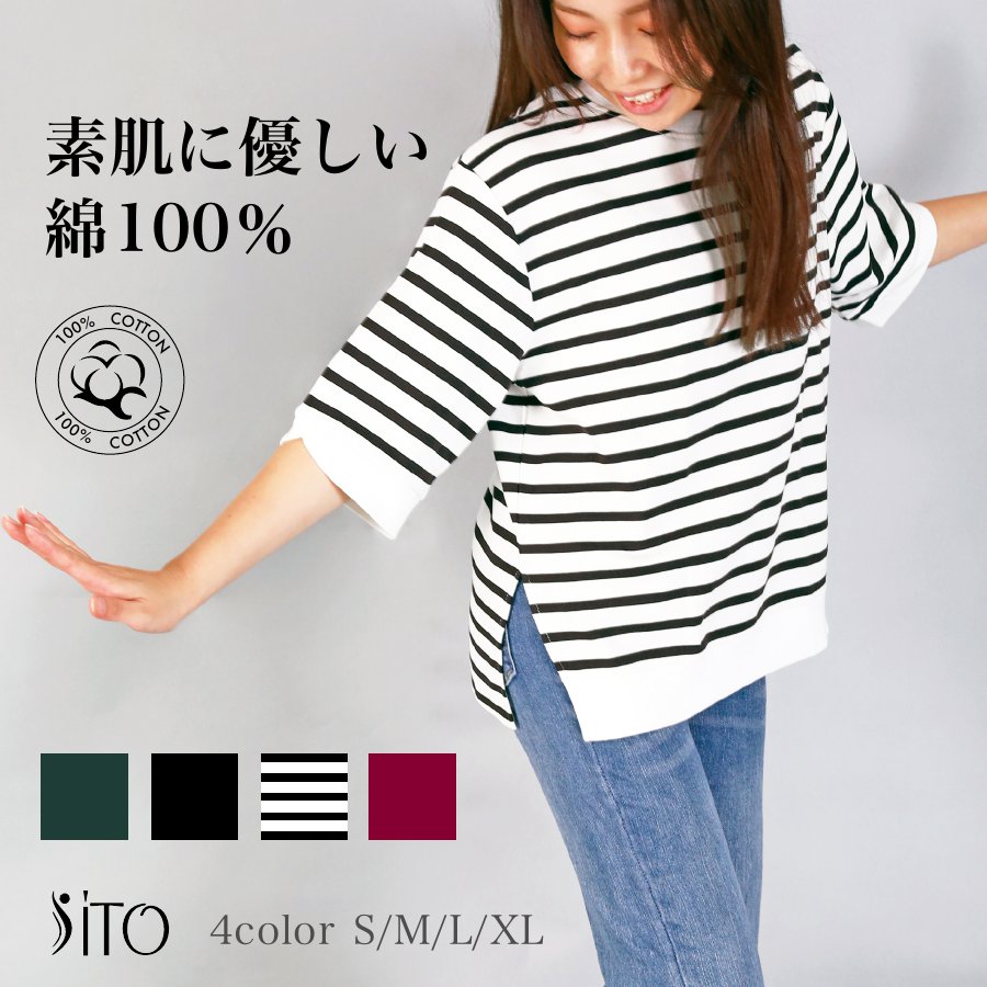 五分袖 Tシャツ レディース | S ~ LL 全3色 カットソー トップス 半袖 長袖 シンプル 無地 ボーダー 綿100 春 夏 秋 カジュアル 20代 30代 40代 50代 60代 レディースファッション