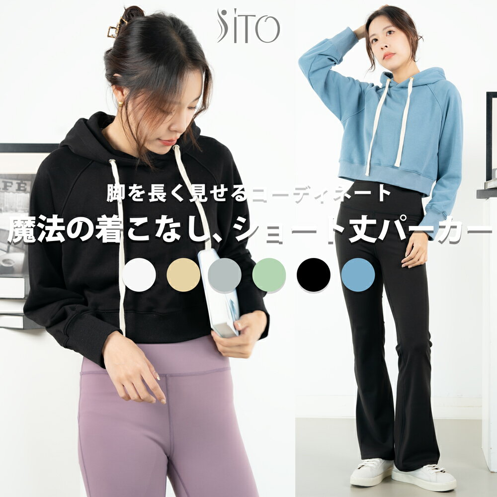◎脚長の魔法パーカー◎パーカー ショート丈 レディース トレーナー トップス アウター フード スポーツ ジョギング ジム フーディー 長袖 長そで 羽織り スウェット 体カバー 高見え 着回し 男女兼用 リボン オーバーサイズ 綿 薄手 春秋冬