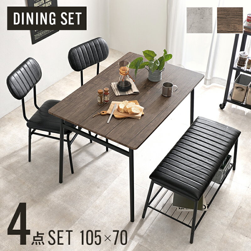 ダイニング 4点セット LDS-4854 ダイニングセット 4人掛け テーブル 棚付きベンチ チェア ベンチ 収納付き 椅子 机 スツール 角丸 長方形 コンパクト 北欧 おしゃれ シンプル【メーカー直送品】 [WDS]