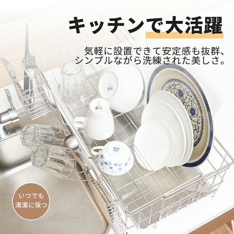 超人気 水切りかご シンクサイド スライド 調整可能 ステンレス シンクに渡す 箸置き付き キッチンラック 水きりかご 食器 水切りラック