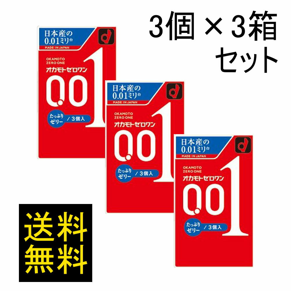 オカモトゼロワン コンドーム【3箱セット】 3個入 0.01 たっぷりゼリーレギュラー 3個入り×3箱セット 男性用 避妊具 日本製 送料無料