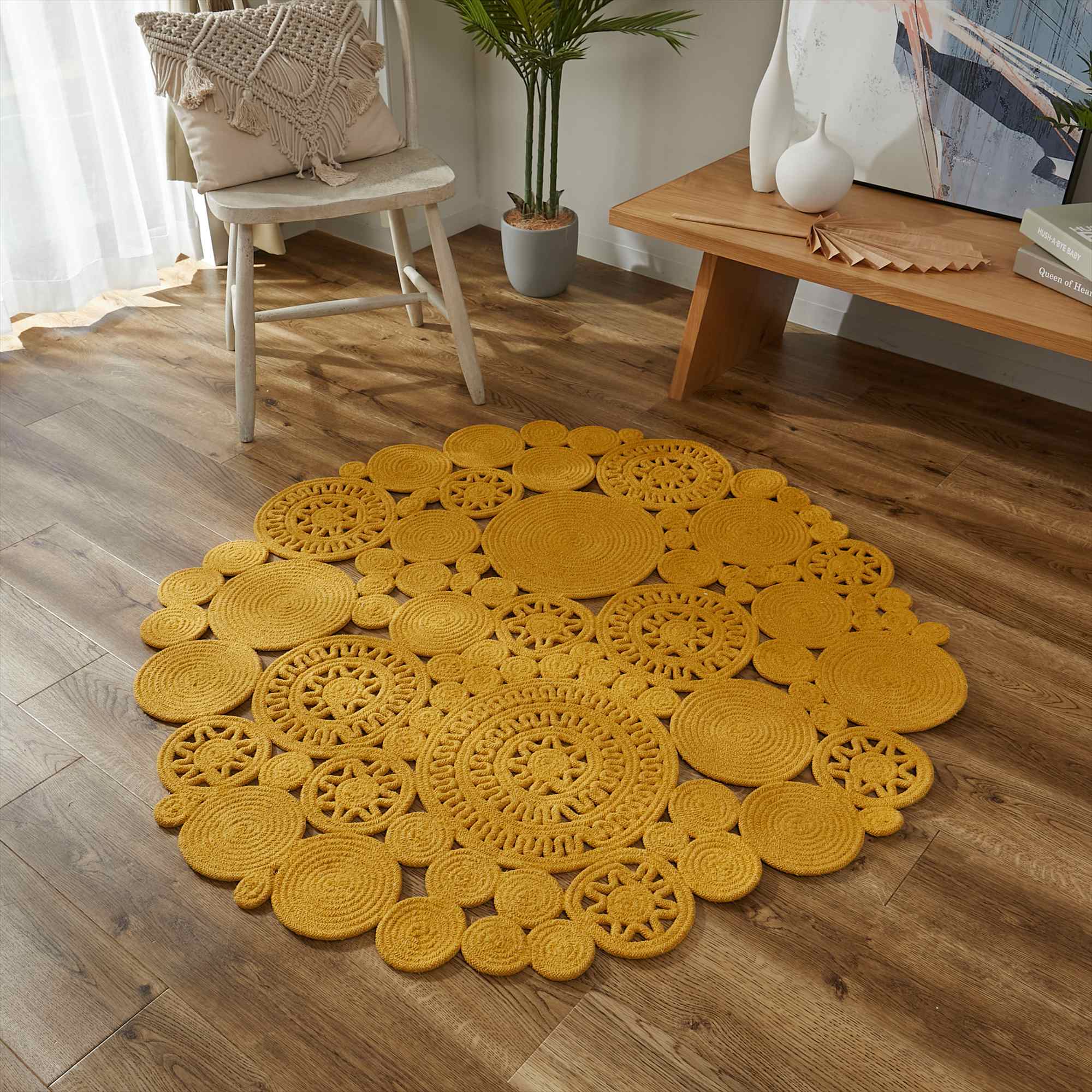 ラグ カーペット 120cm円形 丸形 綿100% イエロー ベージュ アイボリー グレー ブルー