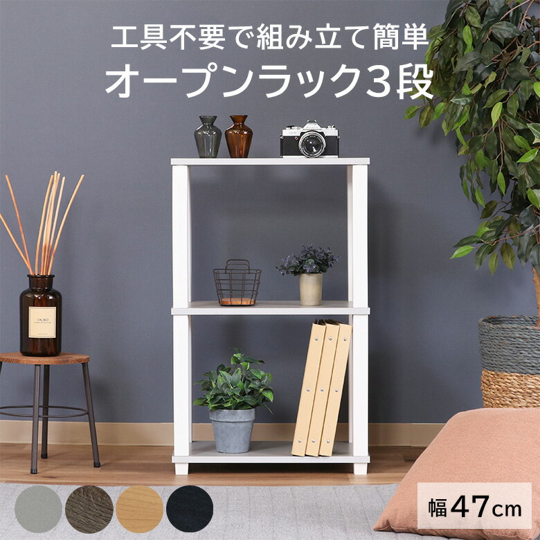 【送料無料_a】 オープンラック 木製 スリム 3段 シェルフ 軽量 簡単組み立て 幅47 奥行29.5 高さ75.7 木目 ブラック ナチュラル ホワイト ブラウン グレー | フィット 3段 ラック