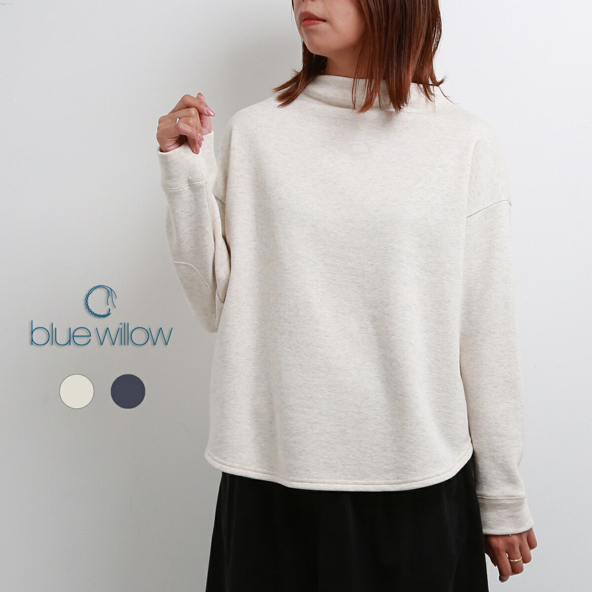 blue willow 裏毛カットソーモックネックプルオーバー レディース ブルーウィロー 01EFP39464 スウェット トレーナー 綿 服 40代 50代 60代 ブランド かわいい トップス 黒 白 ゆったり 春 秋 冬 大きい 体型カバー