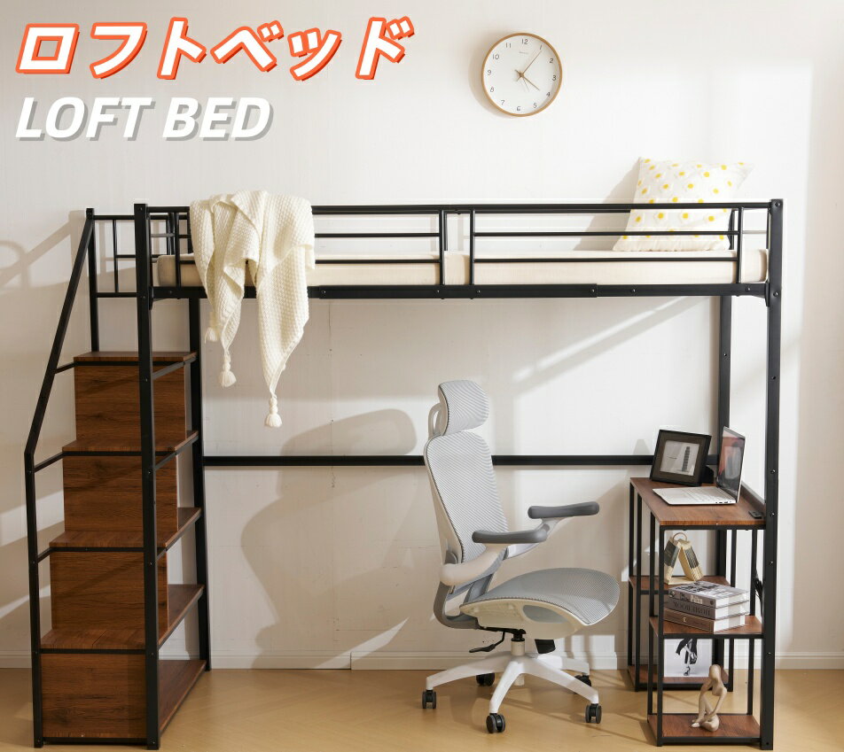システムベット ロフトベッド シングル コンセント付き 収納付き デスク付き 棚付き 北欧風 スチール 耐震