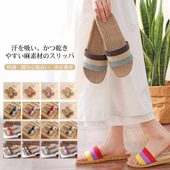 【送料無料】スリッパ ルームシューズ レディース メンズ 男女兼用 ユニセック 前開き 麻 来客用 室内 部屋履き 軽量 滑り止め 通気性 快適 シンプル 春 夏 引っ越し アウトドア ベランダ 履き心地良い カラバリ豊富