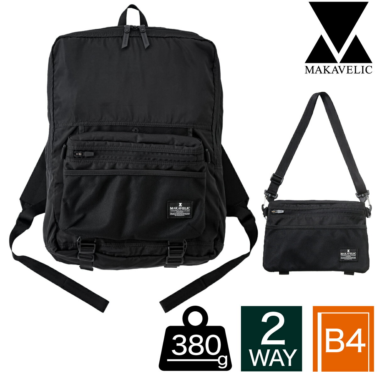 【在庫一掃セール】マキャベリック 2WAY リュック 折りたたみ B4 エコバッグ ショルダーバッグ パッカブル ポケッタブル サブバッグ エコバック ショルダーポーチ ライブ コンサート 推し活 お土産 MAKAVELIC PACKABLE RUCK 3121-10102 正規品 1年保証