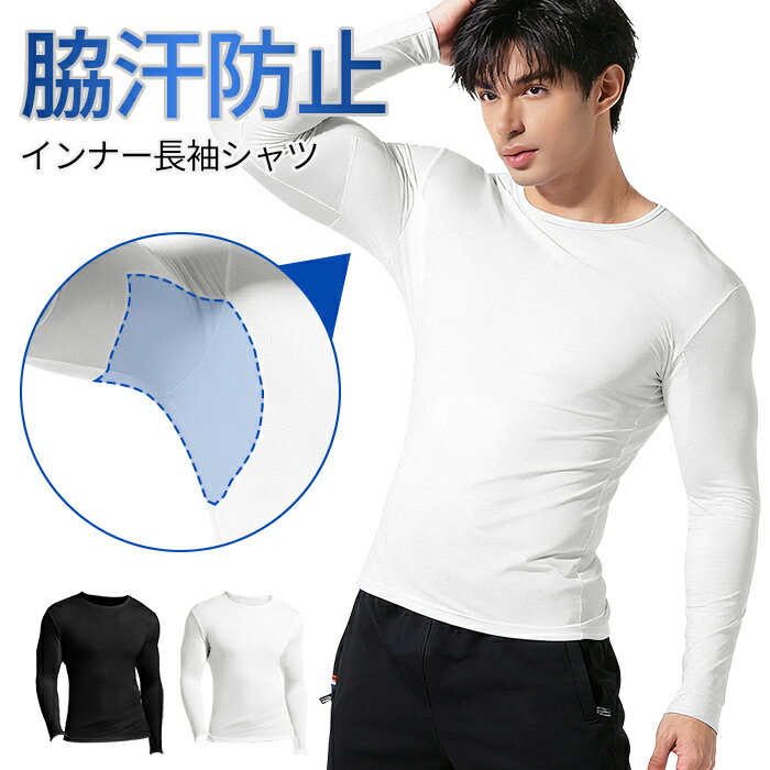 メンズ 脇汗インナー 汗取りパッド付き 長袖 クルーネック Tシャツ 汗染み防止 紳士肌着 吸汗 汗対策 オールシーズン 脇汗対策 男性 通勤 通学 黒 白 mr-006 プレゼント ギフト 母の日 父の日 敬老の日 バレンタイン ホワイトデー クリスマス