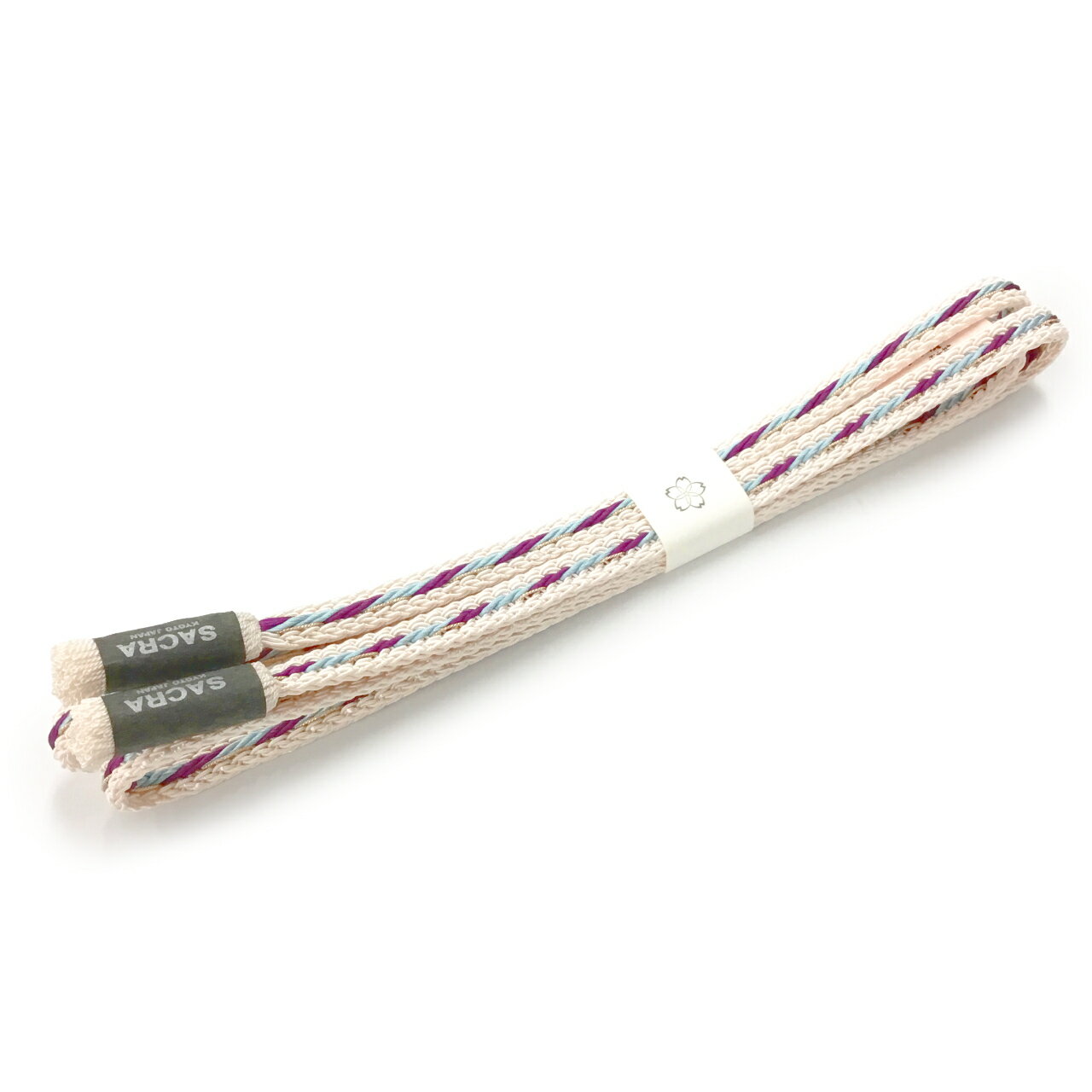 和小物さくら夏帯締め畝源氏手織レース 撚り房象牙色に空色と紫水晶色絹100%金属糸使用【新品】