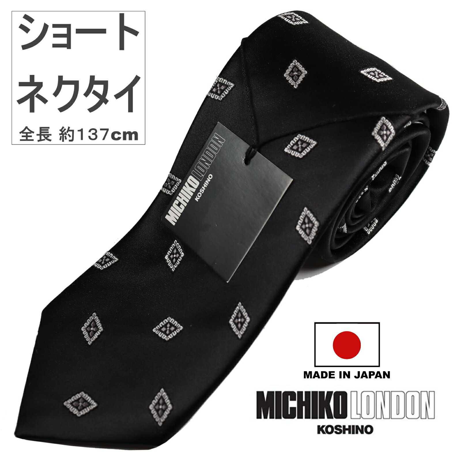 ショートタイ 全長 約137cm ボンディング加工 生地裏張り ボリュームタイプ 日本製 MADE IN JAPAN ネクタイ ブランド MICHIKO LONDON KOSHINO ミチコロンドン 小紋柄 シルク 100% スーツ ジャケットに最適 メンズ レディース 男女兼用 MKJ-046-A ブラック