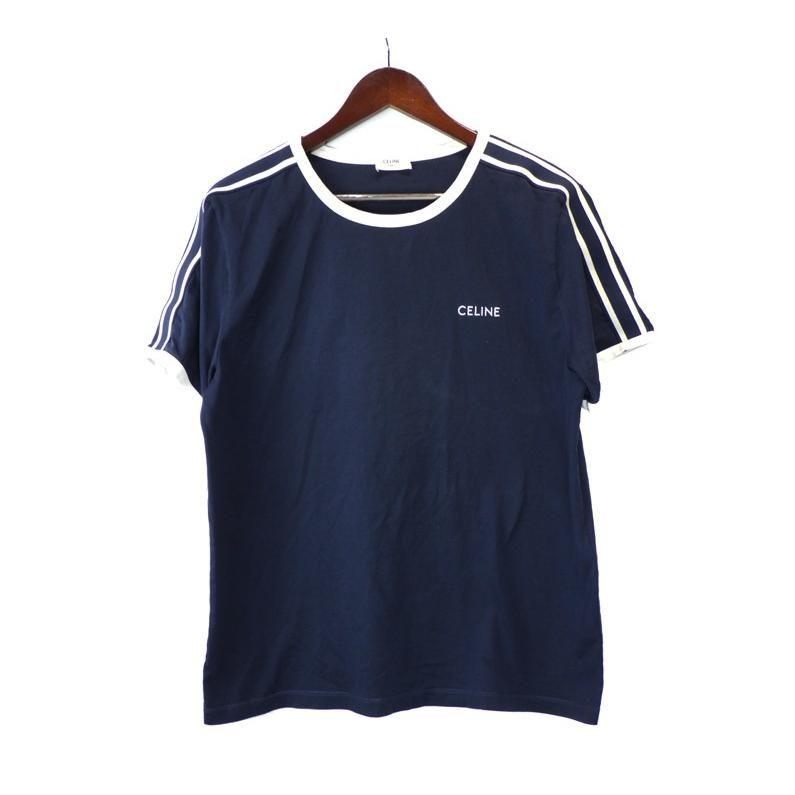 セリーヌ CELINE 【 2X15N671Q 07HC 】 フロント ロゴ 刺繍 コットン ルーズ シルエット レギュラー 半袖 Tシャツ ネイビー サイズXL n10306【中古】