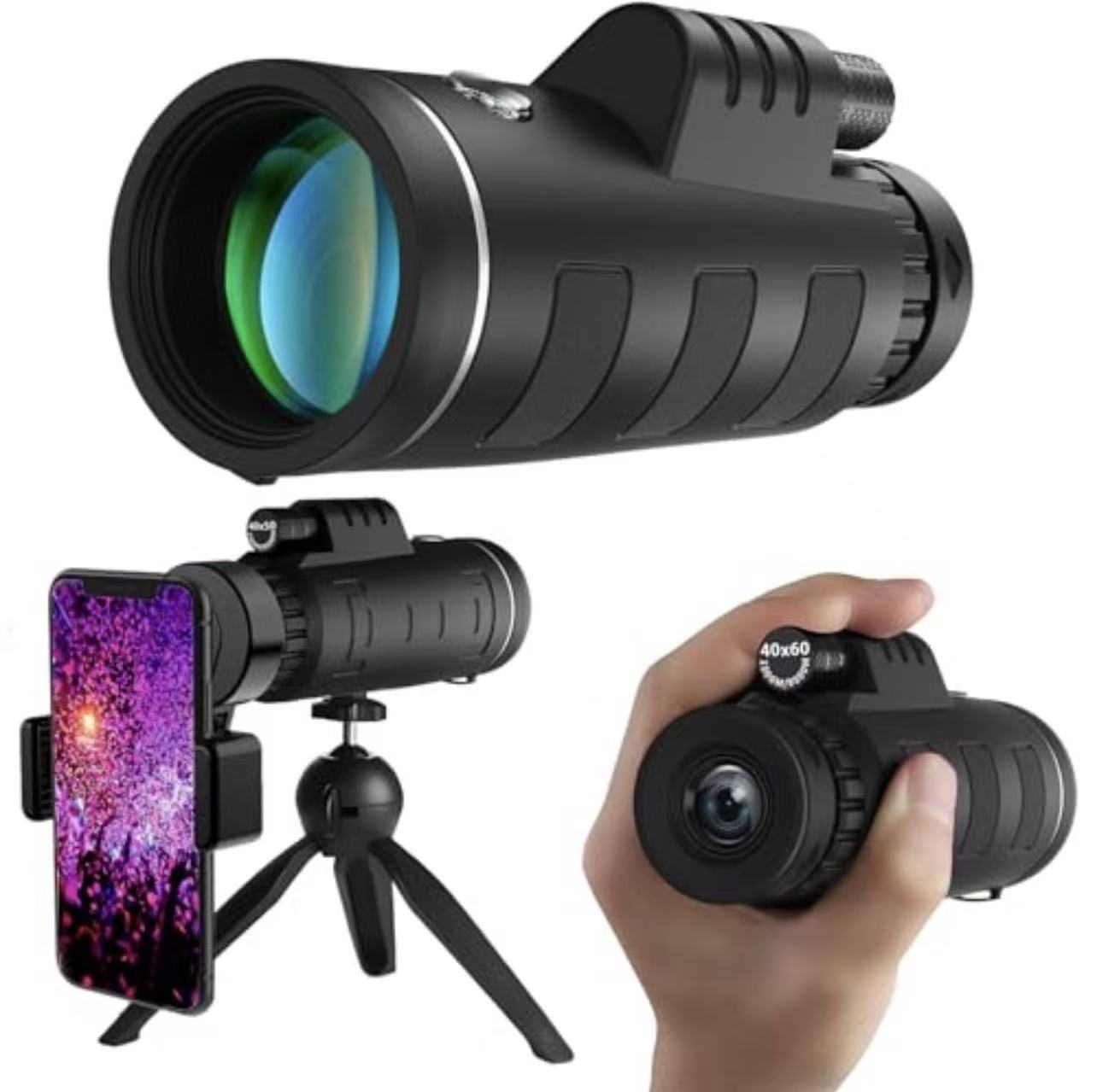 単眼望遠鏡 【40X60高倍率】 ハイグレードプリズム搭載 Bak4 広角 スマホ 望遠レンズ 高透過率 コンパクト 防水 耐衝撃 望遠鏡 広角レンズ 遠距離撮影 簡単設置軽量 スマホ対応 IPX7防水 三脚付き 夜景/バードウォッチング/アウトドア/スポーツ観戦/コンサート