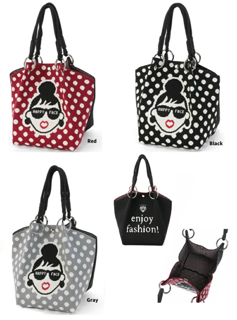 HAPPY FACE ミニニットバッグ ドット ハッピーフェイス トートバッグ バッグ レディース ニットバッグ トート バッグ】HAPPY FACE ミニニットバッグ ドット