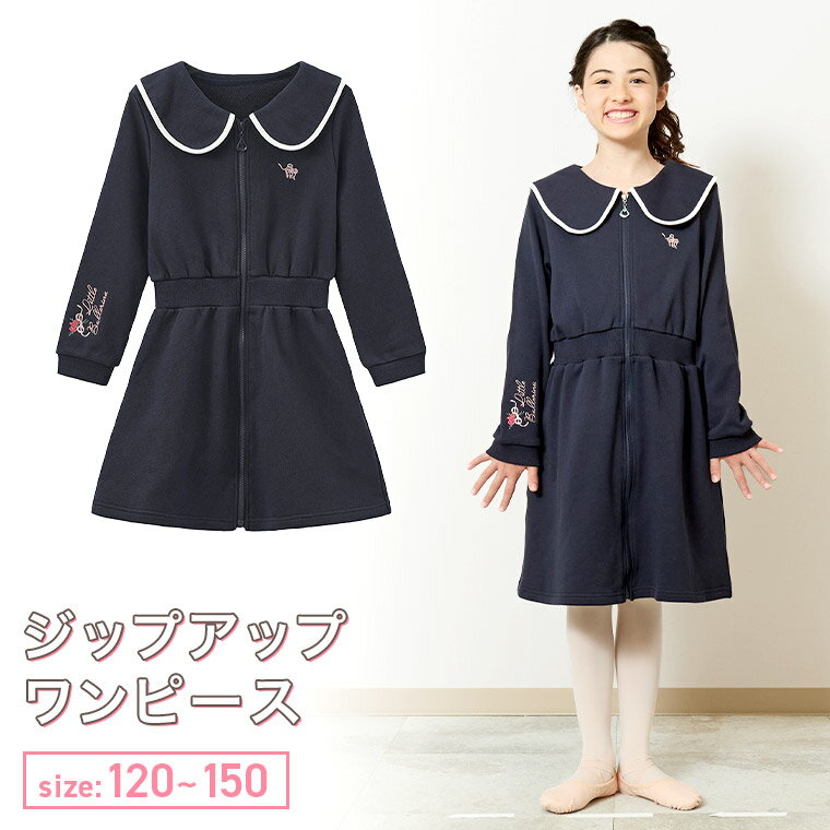 【2026新作】 ジュニア キッズ 長袖 バレエ ジップ ワンピース ジップアップ 厚めスウェット生地 バレエ レッスン着 パーカー ワンピース 120 130 140 150 160