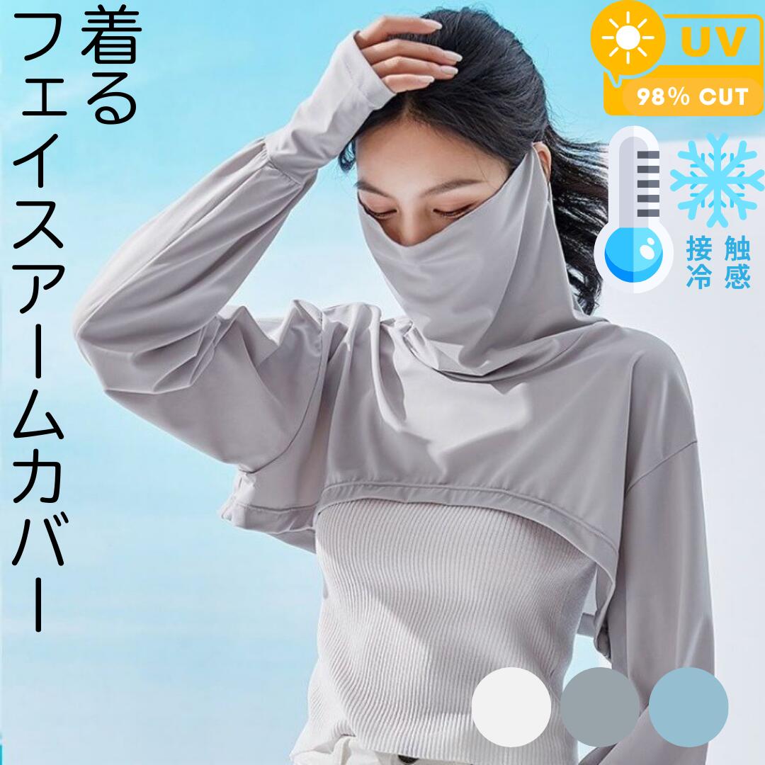 着るアームカバー フェイスカバー 冷感 uv ボレロ ゆったり レディース UV 手袋 日焼け防止 薄手 ドライブ 接触冷感 吸汗速乾 夏用 ウイルス 防止 スマホ UVカット 指あき 洗える 車 運転用 通勤 日除 おしゃれ 可愛い きつくない 大きいサイズ