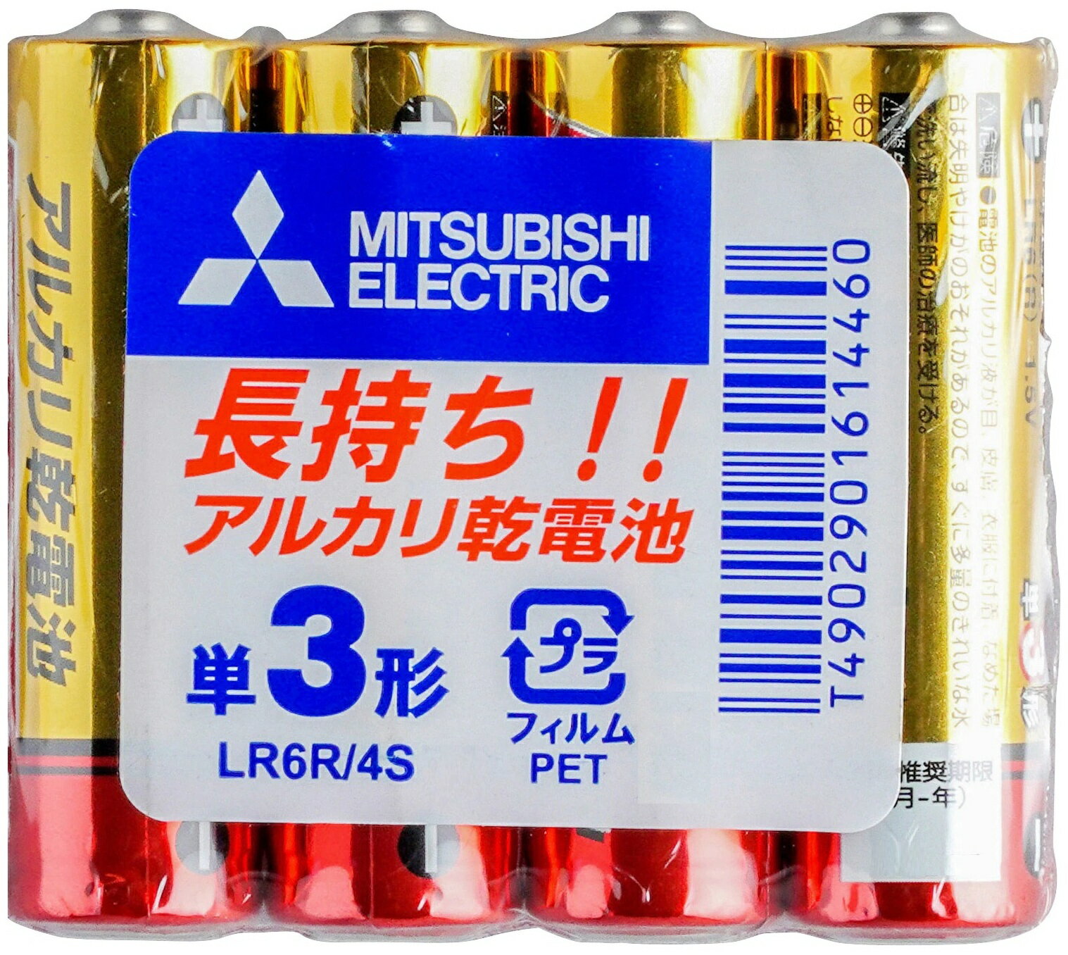単3形アルカリ乾電池 単3電池 三菱 4本パック防災用電池 アルカリ単3 LR6R/4S 使水銀0使用 長持ち電池 使用推奨期限4年 三菱電機