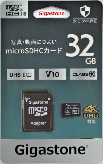 32GB microSDHCカード Gigastone UHD対応 microSDカード 90MB/S Full HD撮影 ギガストーンGJMX-32GV1 SDアダプタ付 カメラ/スマホ/SWITCH
