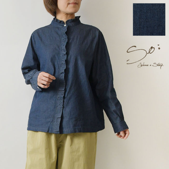 *【10%OFFクーポン対象商品】【SO エスオー】コットン 4.5オンス ライト デニム フリル ブラウス(sb1968)レディース 春 夏 シャツ ジーンズ ゆったり 重ね着 レイヤード ナチュラル 服 新作 シンプル おしゃれ コーディネート ナチュランド 30代 40代 50代 60代