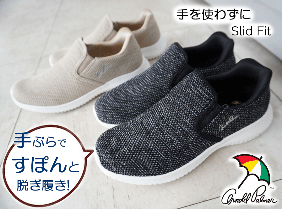 送料無料 アーノルドパーマー スニーカー Arnold Palmer AL1202 スライドフィット 手ぶらですぽん 脱ぎ履き簡単 軽量 軽い サイドゴア シューズ ニット ウォーキング カジュアル ローヒール ぺたんこ スリッポン 旅行 レディース婦人靴