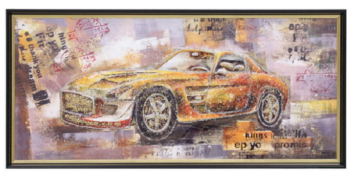 クリスタルアートパネル 送料無料 アートパネル プレゼント ギフト お祝い 贈り物 車 癒しの空間 キラキラ フレーム付 額付 ウッドフレーム 幅94 重量約1.5kg カッコイイ ヴィンテージ調 レトロ アメリカン リビング 壁掛け 廊下 趣味部屋 ミキインテリア