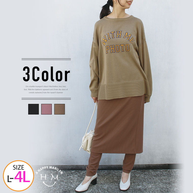 大きいサイズレディース スカート | ぽっちゃり的 優秀 ニット ナロースカート _ オリジナル ボトムス タイトスカート LL 3L 4L 5L 6L 冬 冬物 冬服 ぽっちゃり ゆったり お腹 太もも お尻 腰周り ニットスカート プラスサイズ [432712-2]