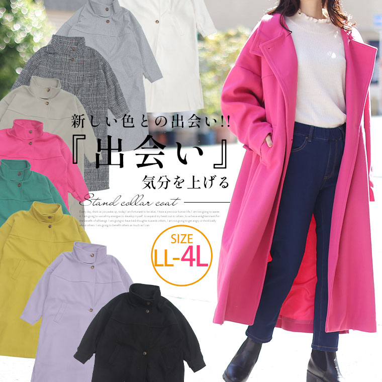 大きいサイズレディース アウター | 毛玉レス スタンド襟 コート _ アウター コート ジャケット LL 3L 4L 冬 冬物 冬服 ぽっちゃり ゆったり カジュアル ナチュラル プラスサイズ フェイクウール スタンドネック きれいめ [trc-222001]