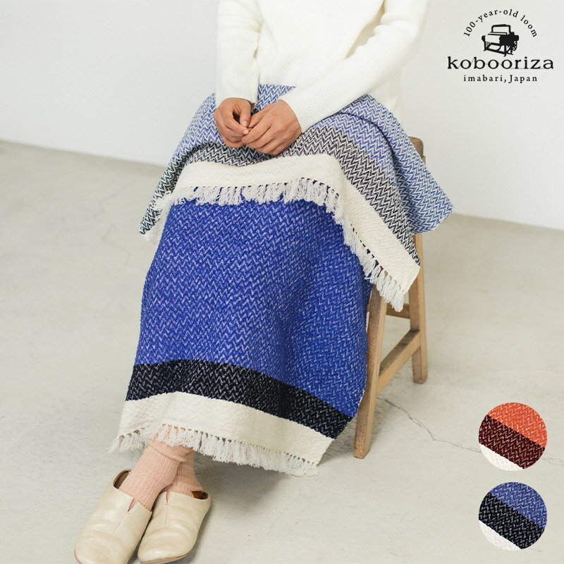 【送料無料】工房織座 LOOP WOOL COTTON BLANKET SHAWL herringbone ウールコットンブランケットショール ヘリンボーン 母の日 ギフト プレゼント レディース 女性 秋冬 日本製 綿100% オレンジ/ブルー