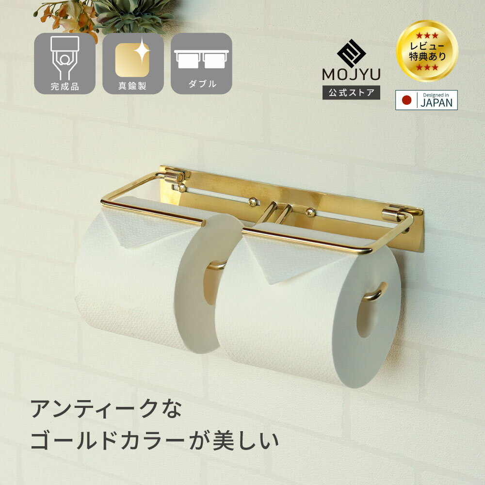 真鍮トイレットペーパーホルダー Fran フラン ダブル 【送料無料】 ペーパーホルダー シンプル 真鍮 コンパクトサイズ 金 ゴールド アンティークゴールド 転落防止 錆防止 壁付け モダン かわいい MOJYU モジュ PH-037