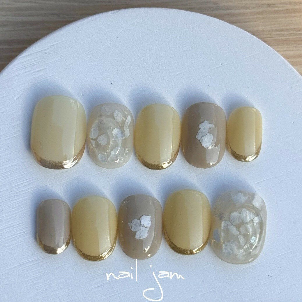 オーダーネイルチップ ハニーミルクのシェルネイル 〜ネイルチップ オーダーチップ サイズ選択 ブライダル 成人式 nailjam ネイルジャム ミラーネイル シェル No.JO068