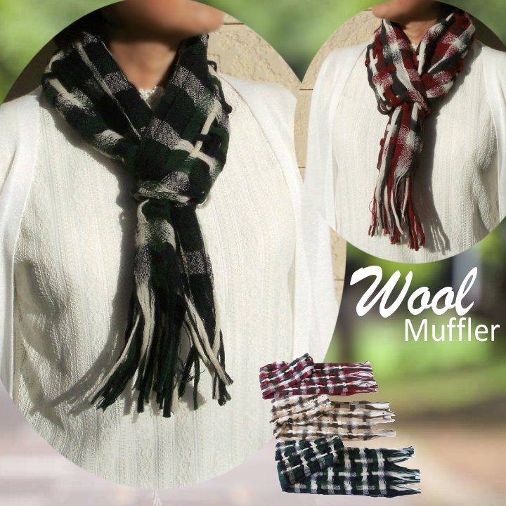 【日本製 メール便送料無料】ウール透かし織り差し込みマフラー(全3色) / ウール100% マフラー ミニタイプ 軽い メンズ 男女兼用 保温 防寒 秋冬 チェック あったか ギフト 【楽ギフ_包装選択】