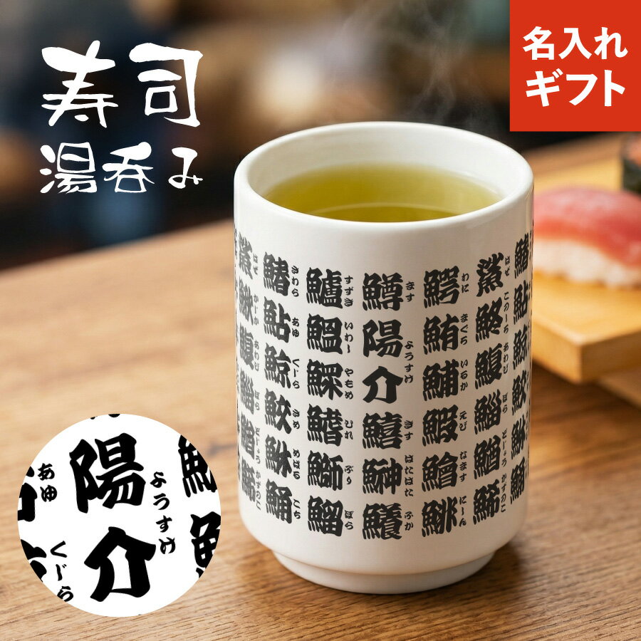 【新商品】寿司屋湯呑風 名入れ 湯呑 350ml 名前入り 魚 漢字 陶器 文字入れ 寿司屋 コップ 洗いやすい ゆのみ 湯のみ おしゃれ 結婚祝い 退職祝い 誕生日 記念 ギフト 贈り物 父の日 母の日 敬老の日 送料無料