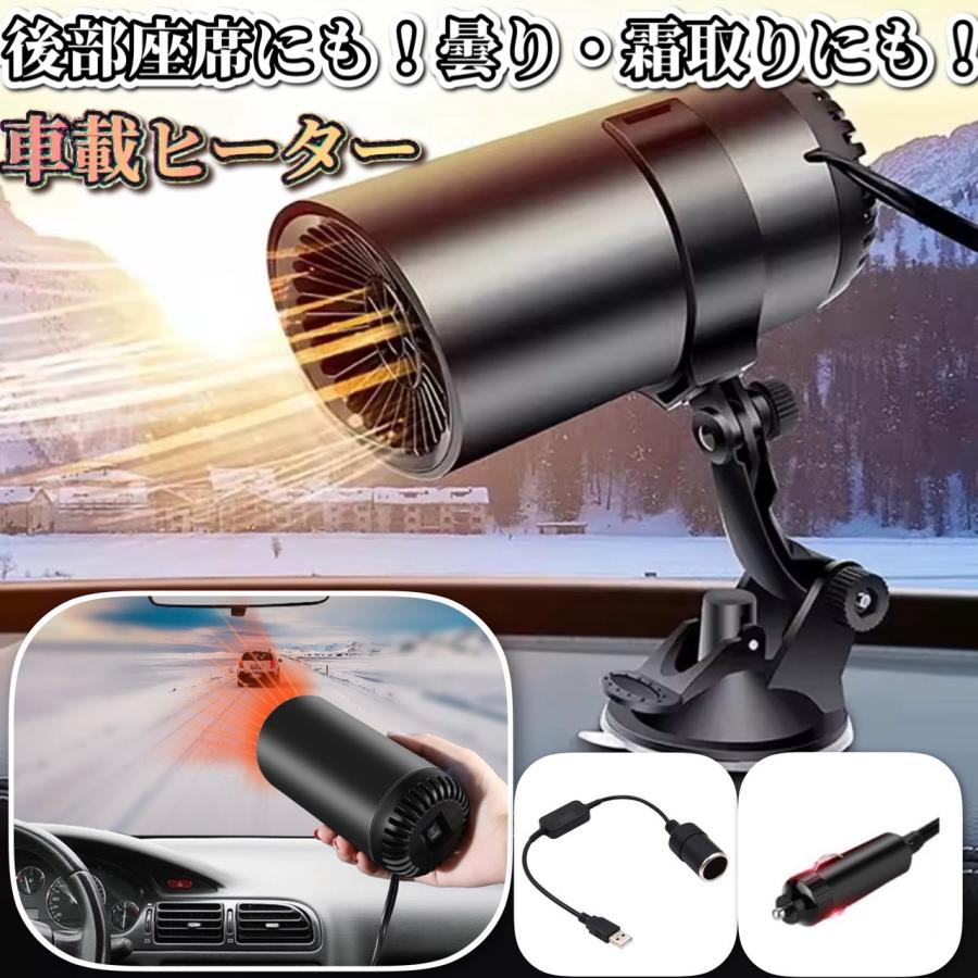 ☆後部座席や霜取りに☆ 車載ヒーター USB&シガーソケット 12V 取り外し式 温風&冷風 強力吸盤 曇り 凍結 暖房 手持ち