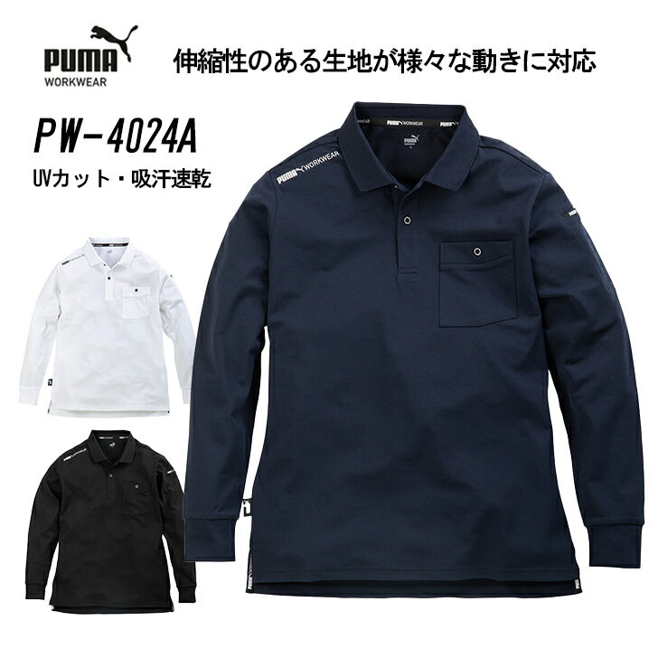 プーマ 長袖 ポロシャツ メンズ PW-4024A ワークウェア 作業着 作業服 ユニホーム PUMA ストレッチ UVカット 吸汗速乾 春 夏 秋 冬 通年