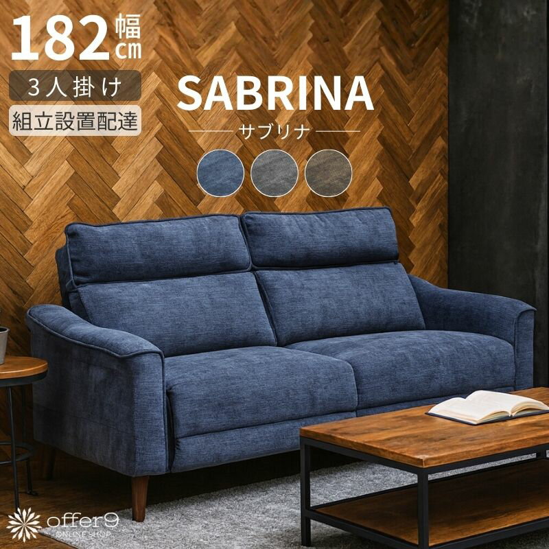 ソファ ソファー 布 ファブリック ハイバック グレー ブルー ブラウン 三人掛け 3人掛け 3P 背面脱着 脚付き /サブリナ