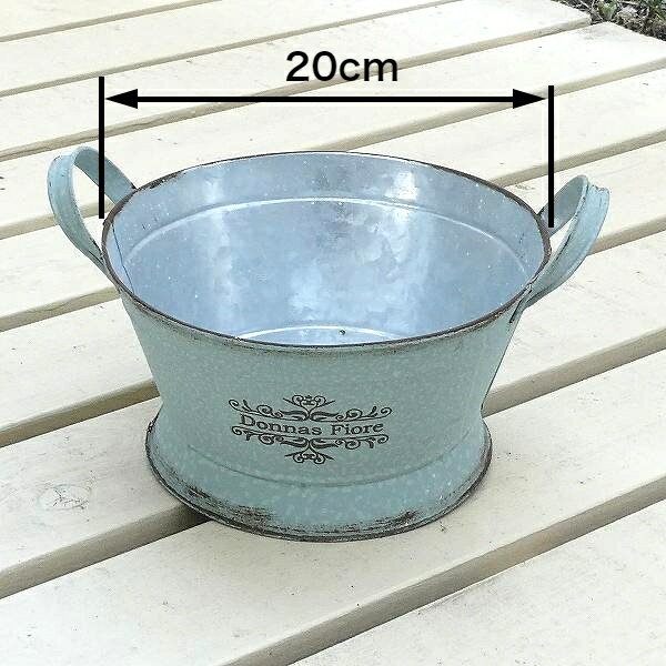 鉢 ラウンドティンプランター ブルーS 直径20cm ブリキ おしゃれ ガーデニング 村田屋産業 No.5674 資材 250401