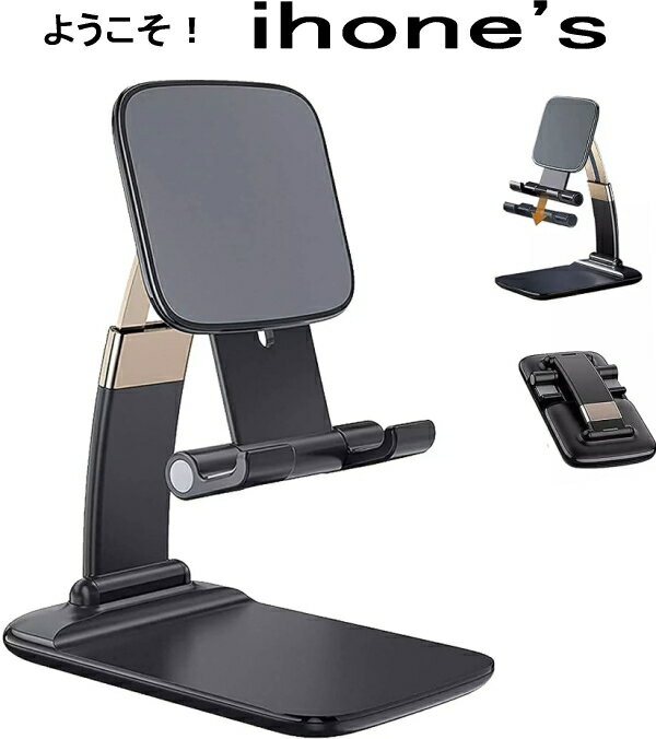 【6003】タブレットスタンド/スマホスタンド iPhone Xperia Galaxy 軽量 折りたたみ式 コンパクト 持ち運び便利 ブラック