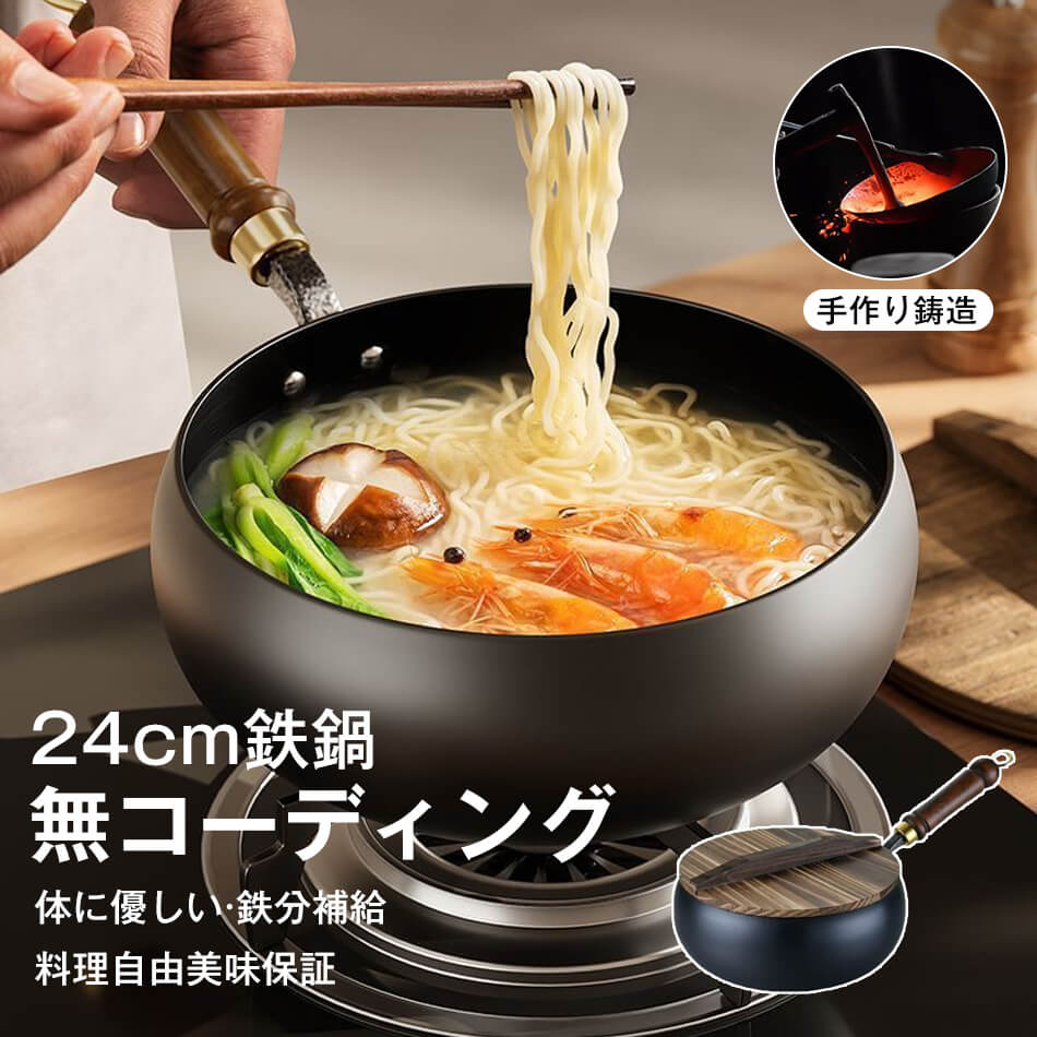 24cm鉄鍋 軽量設計 伝統鉄鍋 鉄フライパン 錆びない仕様 焦げ付かない 焦げ付き防止 ガス/IH対応 鉄手作り鉄鍋 .インチ鉄製 中華鍋 野菜炒め・揚げ物・煮込み万能 鉄分補給可能 省エネ・ガス代節約 化学コーティング無添加 ガラス蓋/木製蓋