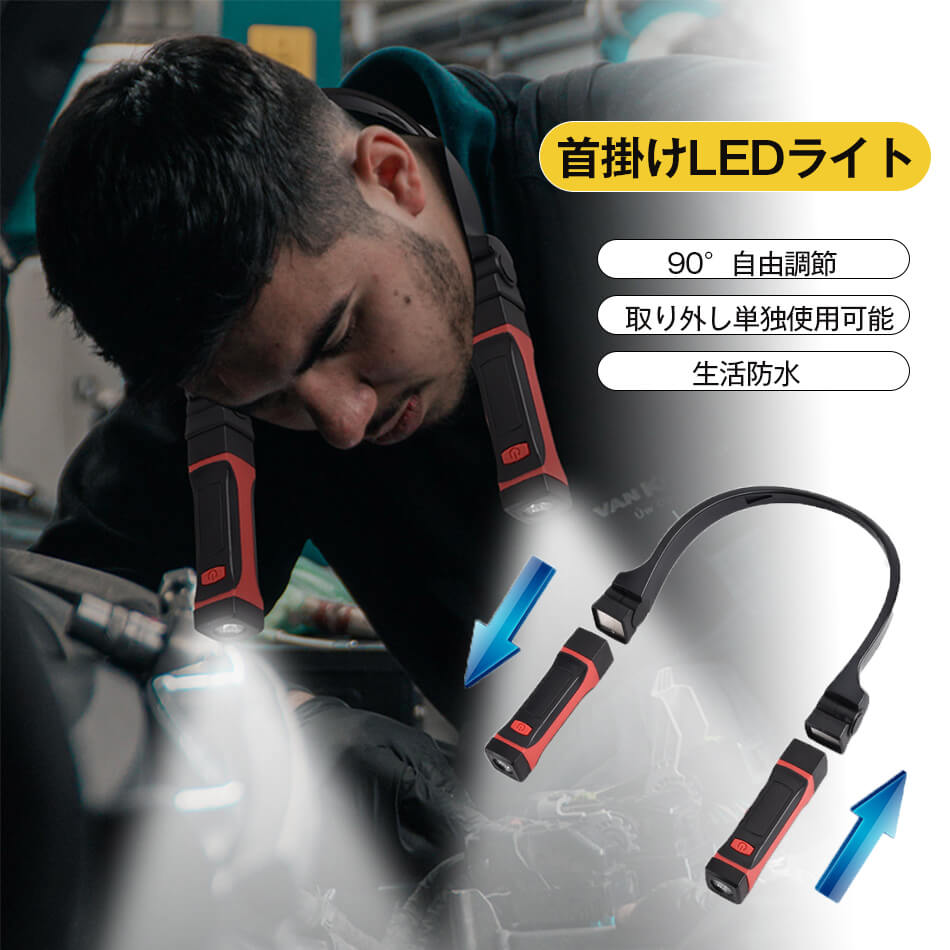 首掛けLEDライト LEDネックライト懐中電灯 LED作業灯 ブックライト LED応急ライト 非常灯 首掛けライト ランプヘッド90°自由調節 トラベルライト アウトドア 防犯 ウォーキング ライト 夜間 釣り 防災 災害 台風 地震 停電 対策