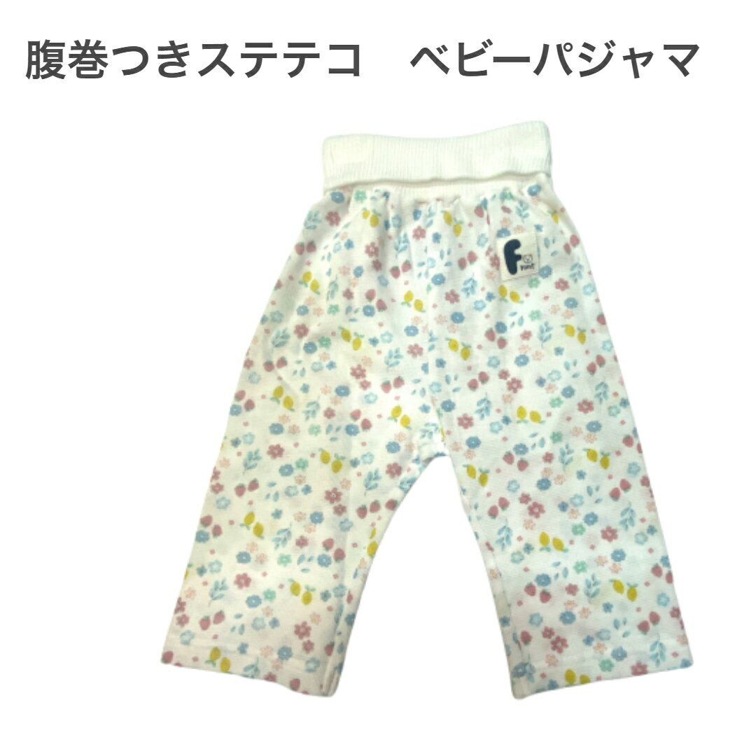 【寝冷え対策にも!腹巻つきステテコ】 ズボン下 腹巻付き ホワイト 白 花柄 抗菌防臭 ナノファイン パジャマ ズボン 腹巻 夏 部屋着 抗菌 春夏 ベビー ベビー服 可愛い 女の子
