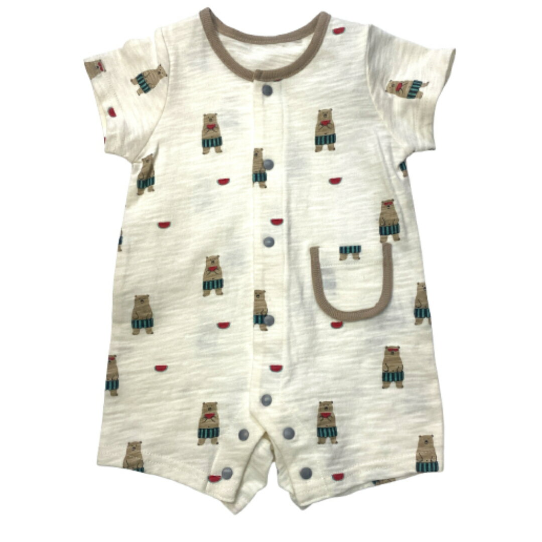 【春夏うまれの赤ちゃんにぴったり】 ミニオール クマ クマ柄 レース アイボリー カバーオール 出産準備 男の子 50-60 50 60 かわいい 便利 おしゃれ 新生児 かわいい 可愛い 赤ちゃん 春 夏 夏生まれ