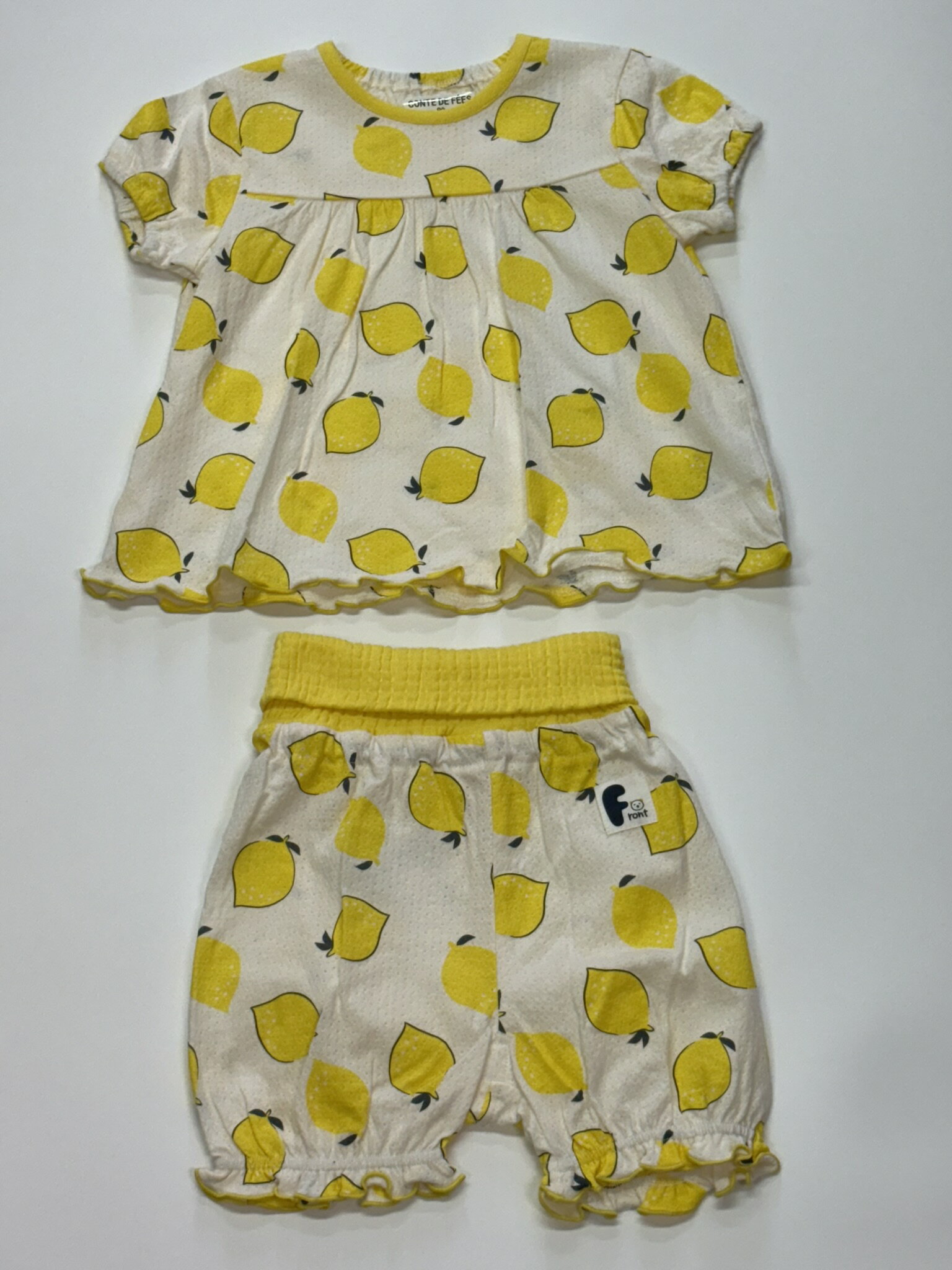 【 かわいいレモン柄 キッズ上下腹巻き付きパジャマ 】ベビー ベビー服 子供服 パジャマ 食べ物 半袖 涼しい 冷え防止 レモン柄 かわいい 90 寝冷え対策 エアコン対策 夏 ねんね 寝巻 部屋着 女の子