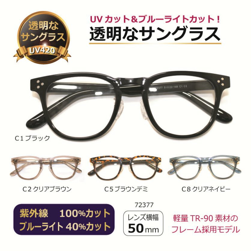 透明な サングラス クリアサングラス 透明サングラス 伊達メガネ UVカット ブルーライトカット 人気 男性 女性 メンズ レディース 軽量 TR-90 メラニン/72377 【度無し】