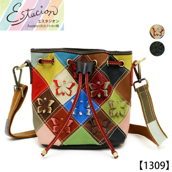 【送料無料】Estacion~エスタシオン~・蝶々モチーフ本革巾着ショルダーバッグ【1309】