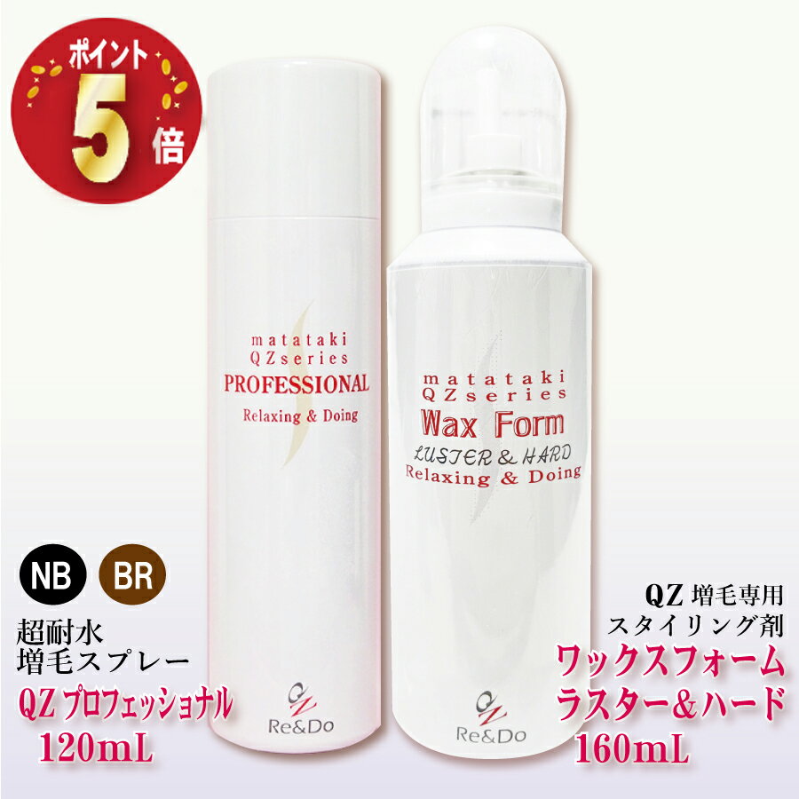 「QZプロフェッショナル120 ワックスフォーム(ラスター&ハード)セット」本格増毛とスタイリング剤のセット