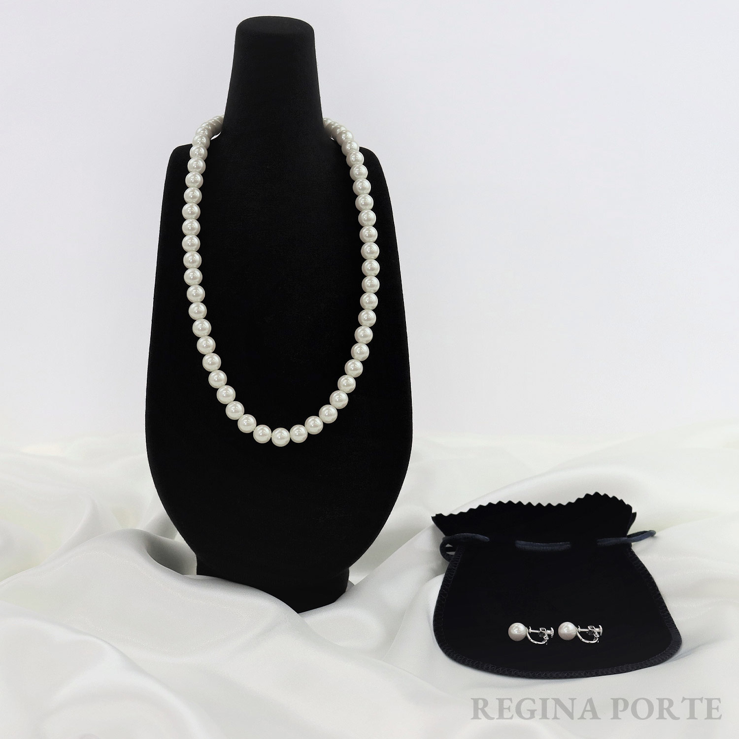 パールネックレス イヤリングセット ガンメタルグレー ガラスパール マグネットタイプ