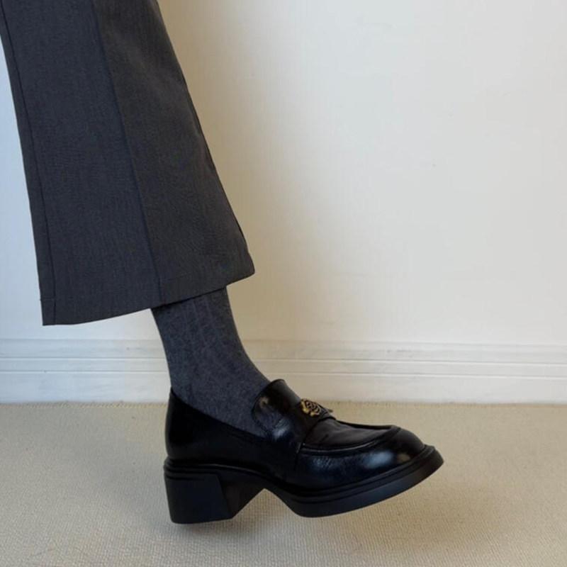女性用 ローファーシューズ 厚底 増高 ラウンドトゥ チャンキーヒール 牛革 軽量 スイートクール スタイル スリッポン カジュアル スポーツ 日常使い クッション性 柔軟素材